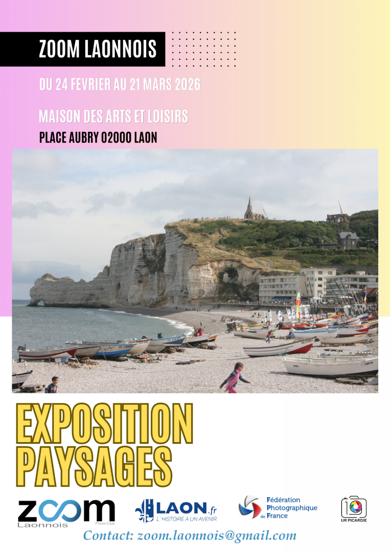 Le Zoom Laonnois a choisi le thème "Paysages" pour son exposition annuelle à la Maison des Arts et Loisirs du 24 février 2026 au 21 mars 2026.